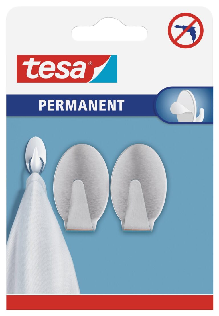 TESA Permanent Hooks Oval Large Metal 2 Hooks Stainless Steel
