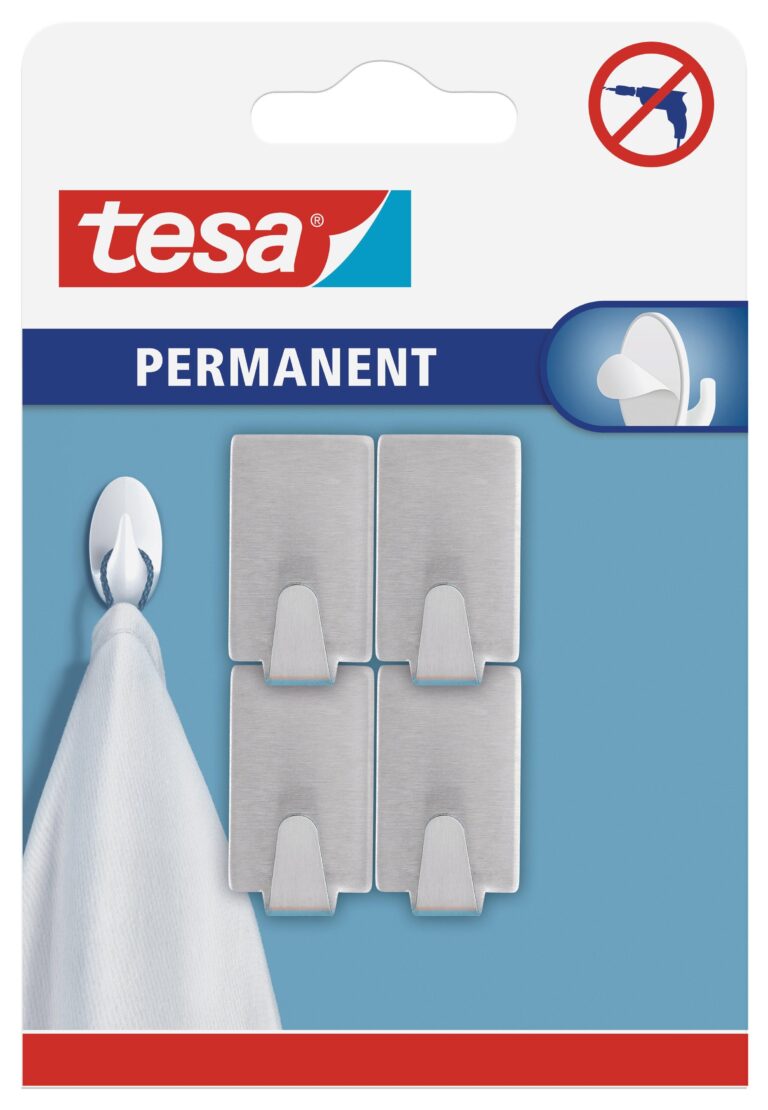 TESA Permanent Hooks Rectangular Small Metal 3 Hooks Stainless Steel