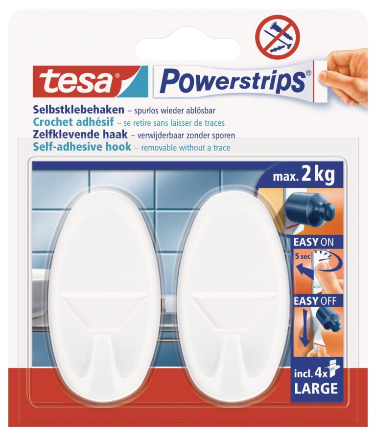 TESA Powerstrips Hooks Large Oval 2 Hooks/ 4 Strips White