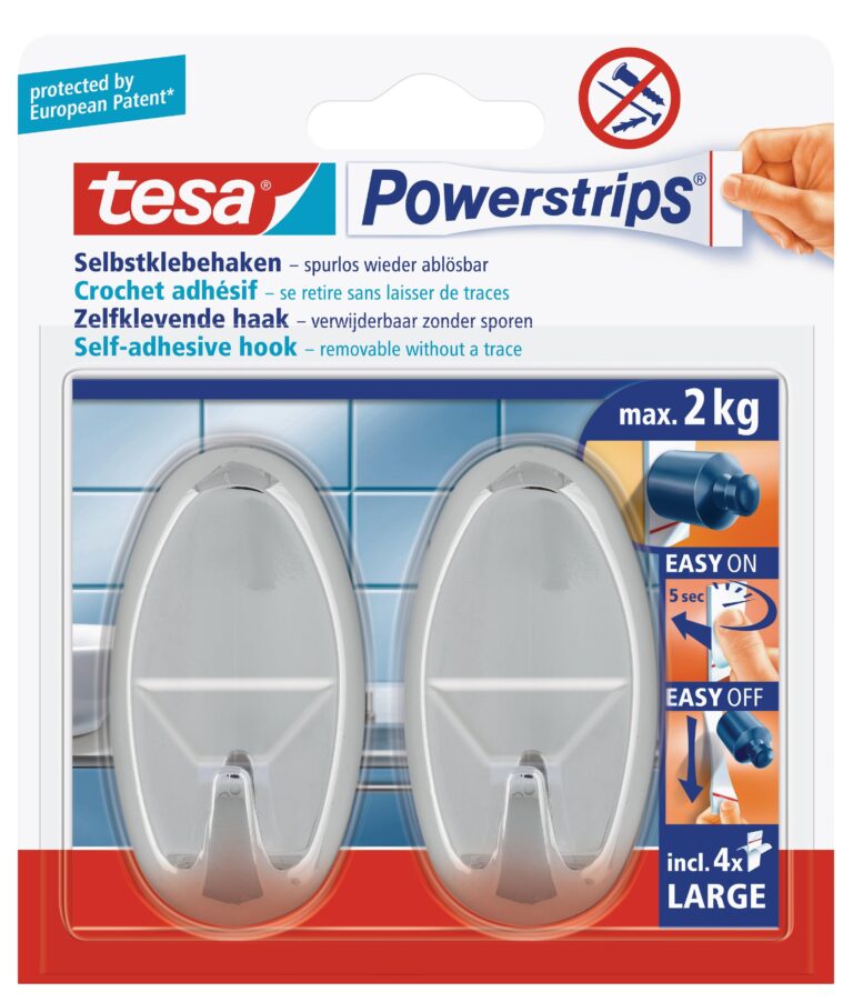TESA Powerstrips Hooks Large Oval 2 Hooks/4 Strips Chrome