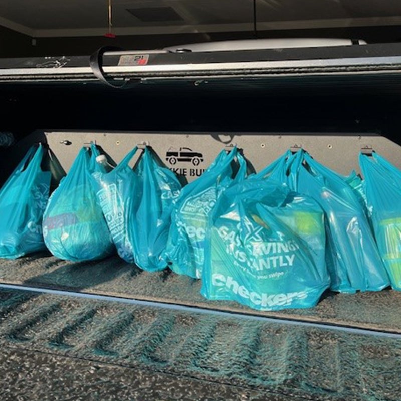Bakkie Buddy comes standard with six fixed hooks for grocery bags and parcels, and two adjustable eye bolts which can be used to secure items with a rope or bungee cord. Bakkie Buddy is supplied ready for DIY installation.