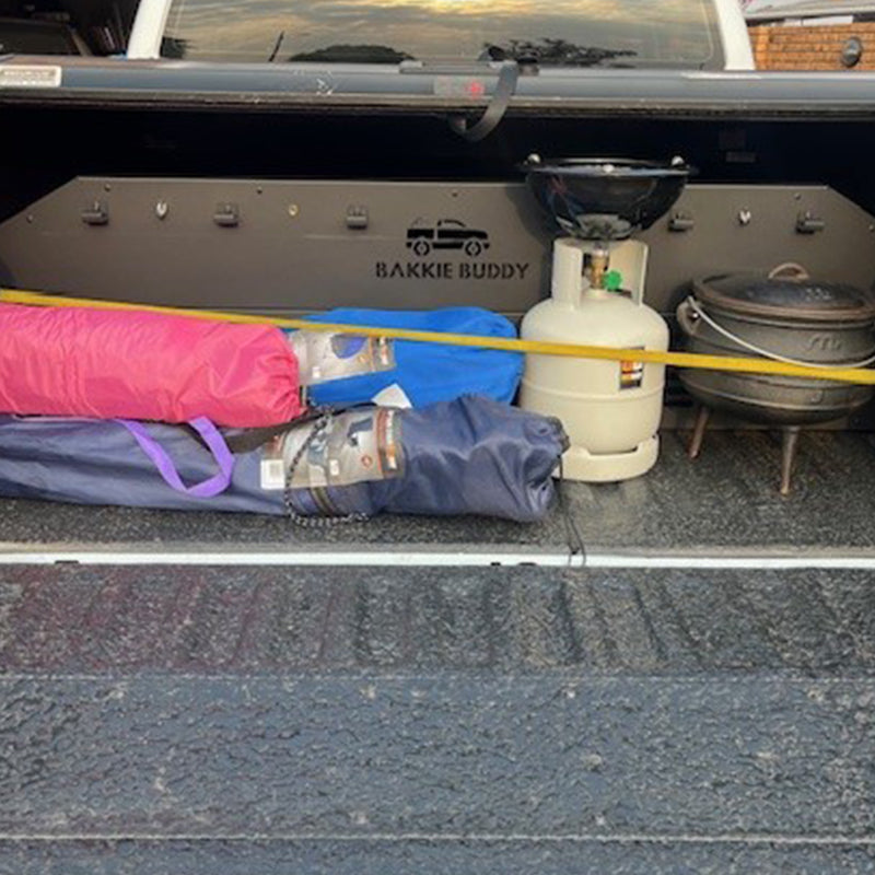 This high-quality product is strong and durable, and is a simple, cost-effective and modern solution for keeping your Bakkie organized! Bakkie Buddy can be installed in just a few simple steps and is also quick and easy to remove when the full loading bay of the Bakkie is required. Bakkie Buddy allows you to pack and transport parcels, groceries and goods in a neat and secure way.