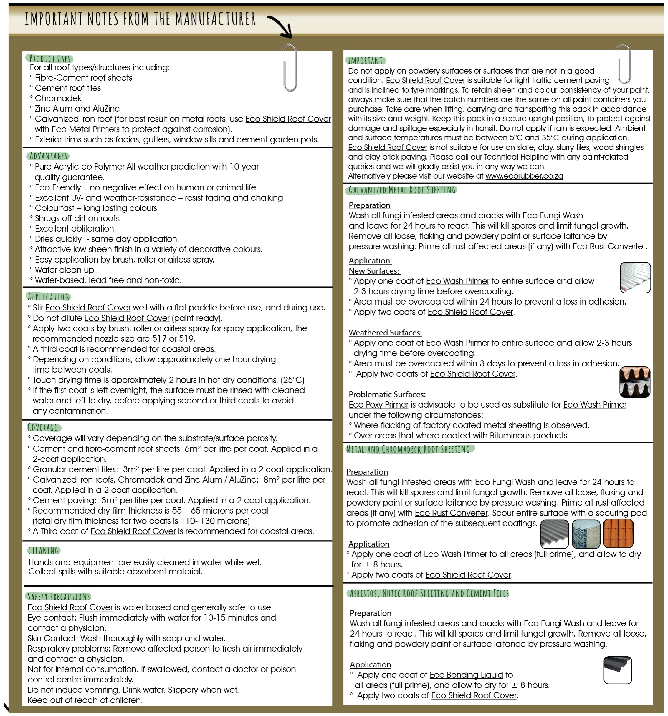 Give your roof the ultimate defense with Eco Shield Roof Coating—a high-performance, water-based solution designed for both industrial and domestic use. Engineered with advanced Styrene Acrylic Co-Polymer technology, Eco Shield delivers outstanding UV reflectivity, long-lasting weather resistance, and vibrant colour protection that keeps your roof looking newer for longer.