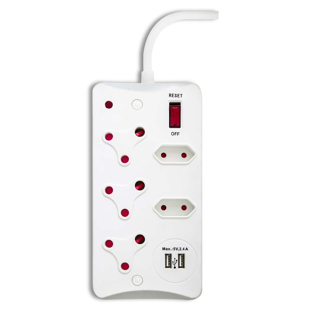 Power up to seven devices safely with the XH-SA322U Multi-Plug Extension. Featuring three standard 3-pin sockets (16A), two slim 3-pin sockets (6A), and two USB ports (2.1A), it provides fast and convenient charging for all your essential electronics from a single wall socket.
