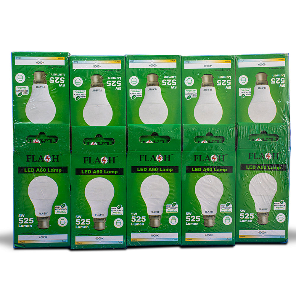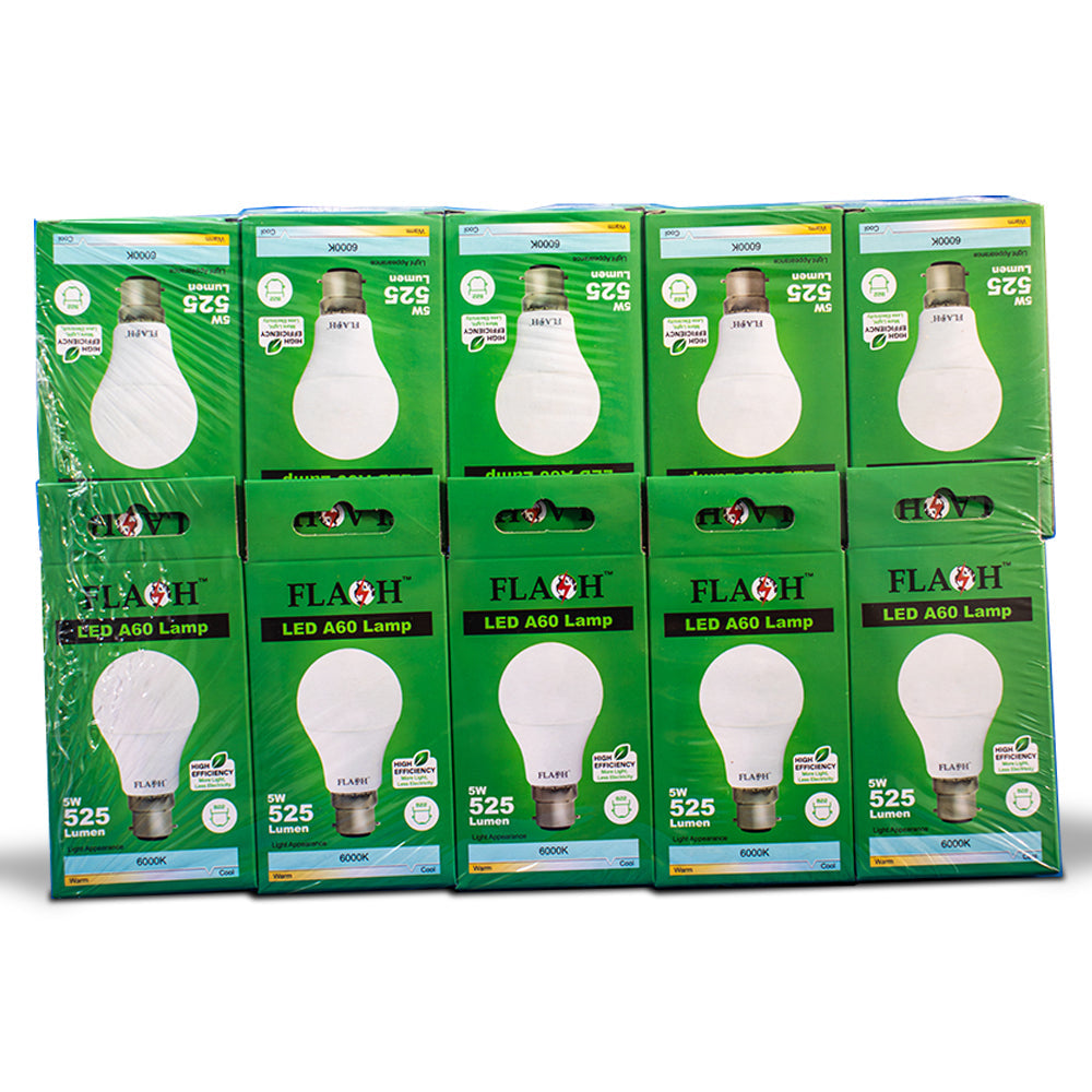 FLASH LED High Efficiency, All Purpose Light Bulb 5W A60 Lamp B22 (10 pack)