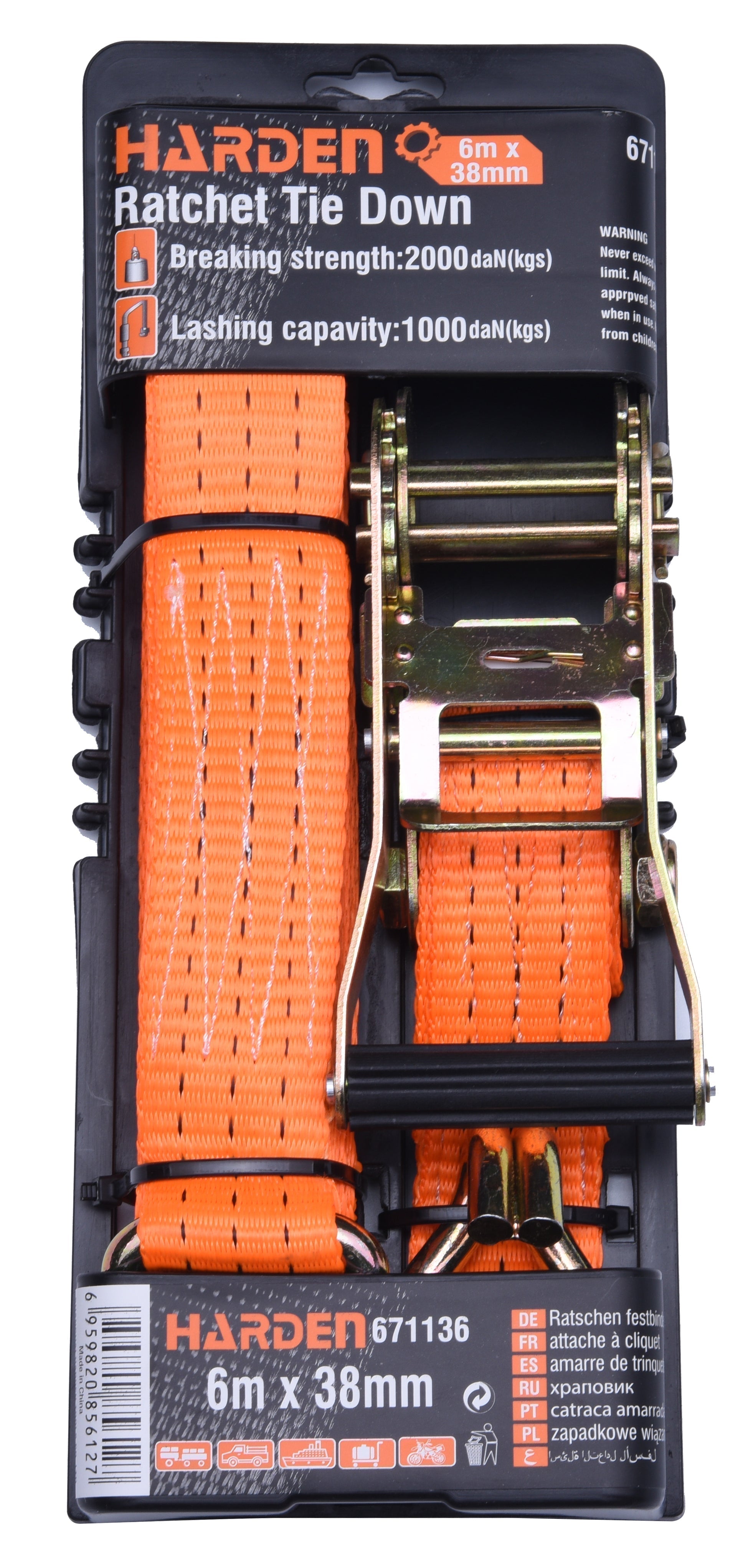 1 x HARDEN Ratchet Tie Down (38mm x 6m)