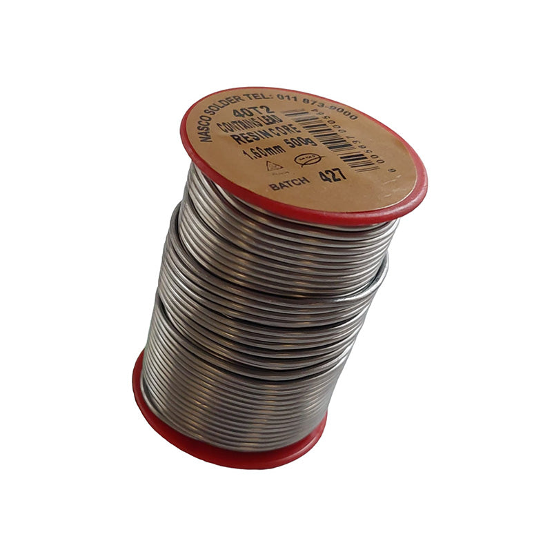 soldering applications, providing reliable conductivity and strong joints. This reel contains high-quality solder wire with a resin core, ensuring flux is evenly distributed for effective soldering.