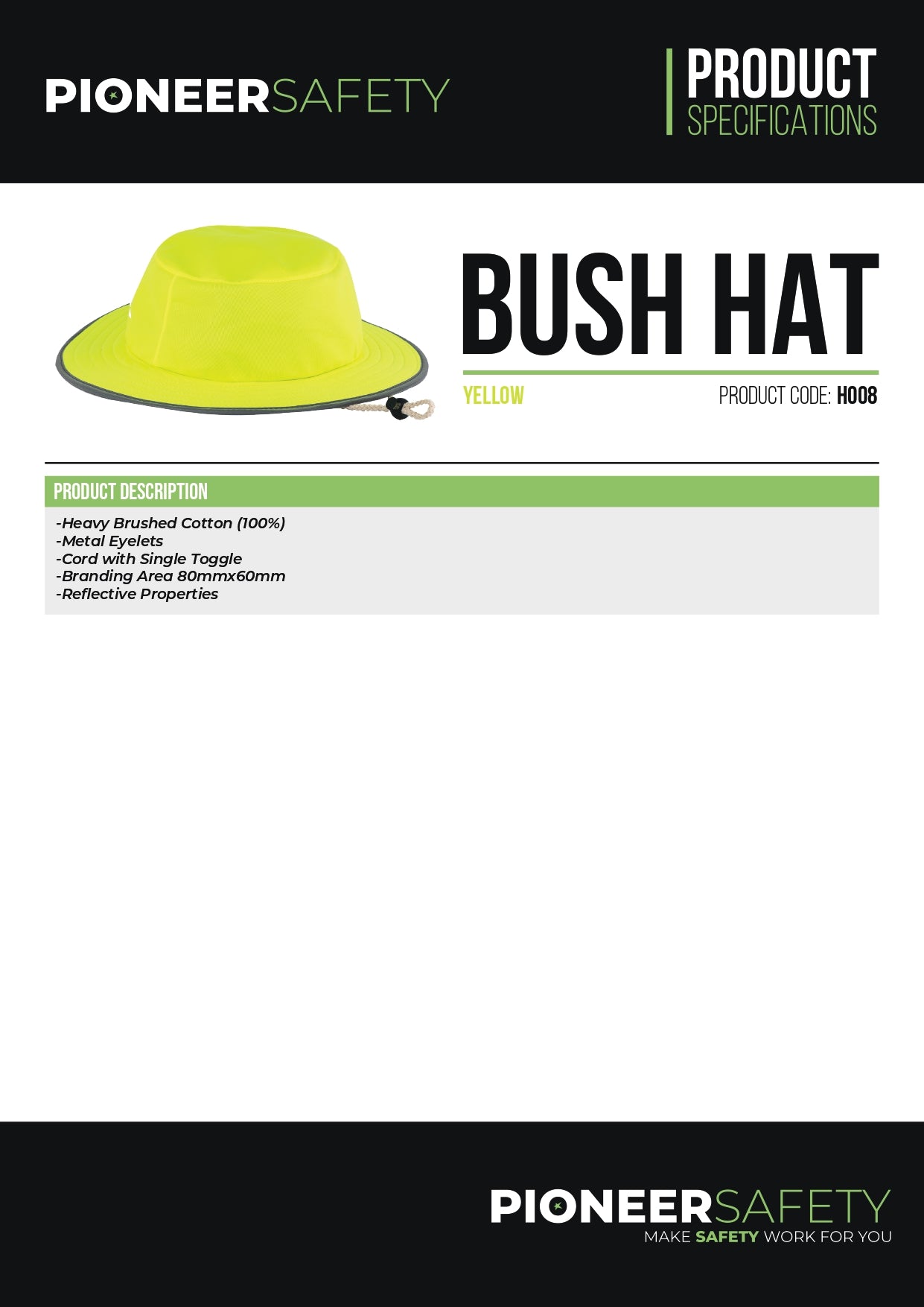 PIONEER SAFETY Bush Hat High Visibility With Silver Reflective Tape