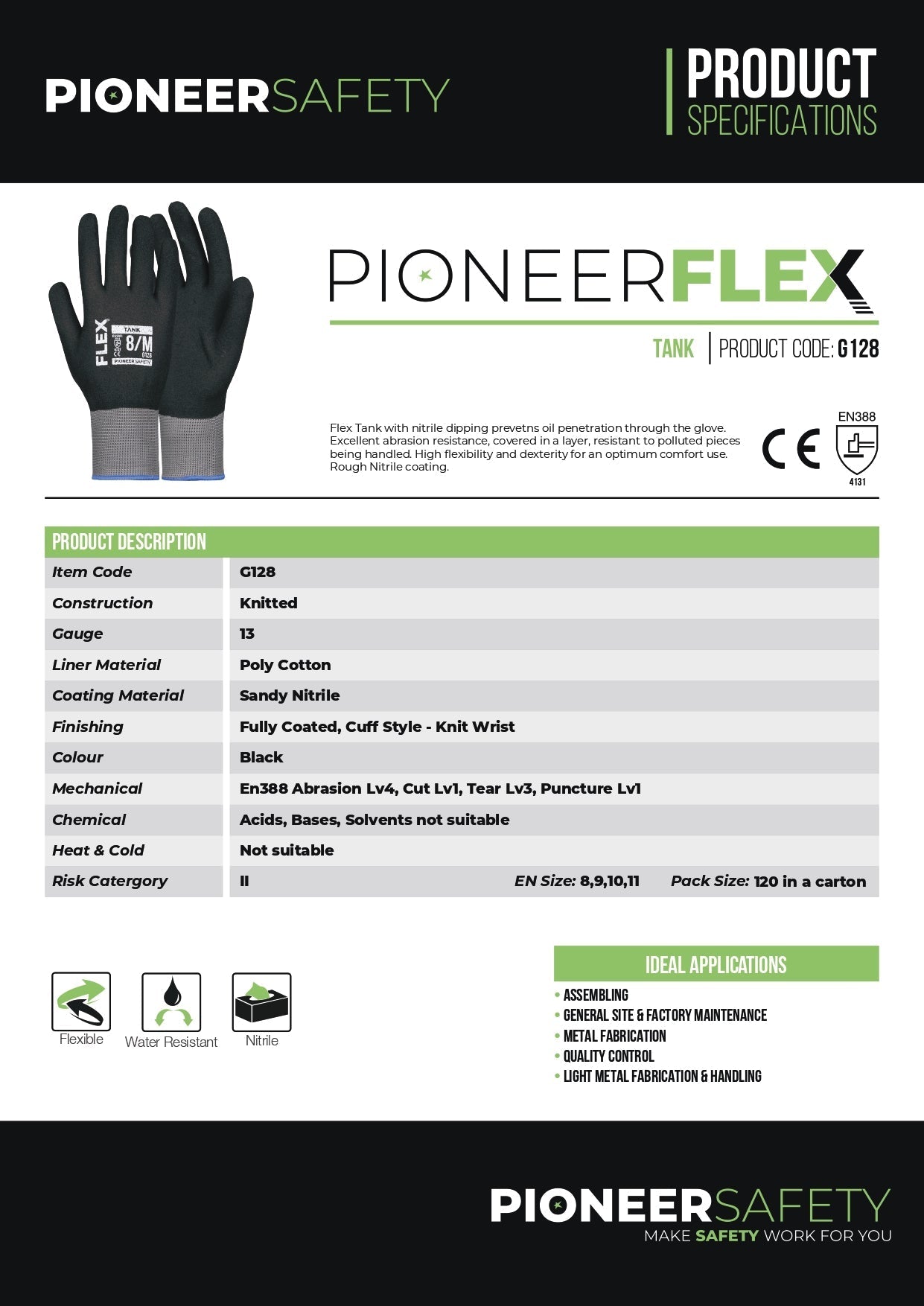 PIONEER SAFETY Flex Tank Gloves Nitrile Dipped G128