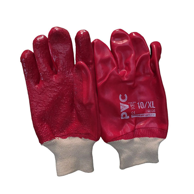 1 x PIONEER SAFETY Gloves PVC Coat Red Extra Heavy Duty Terry Palm Rough Knit Wrist Large