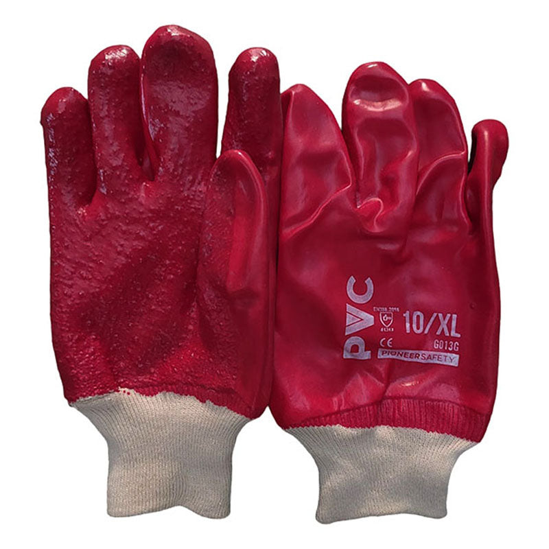 PIONEER SAFETY Gloves PVC Coat Red Extra Heavy Duty Terry Palm Rough Knit Wrist Large