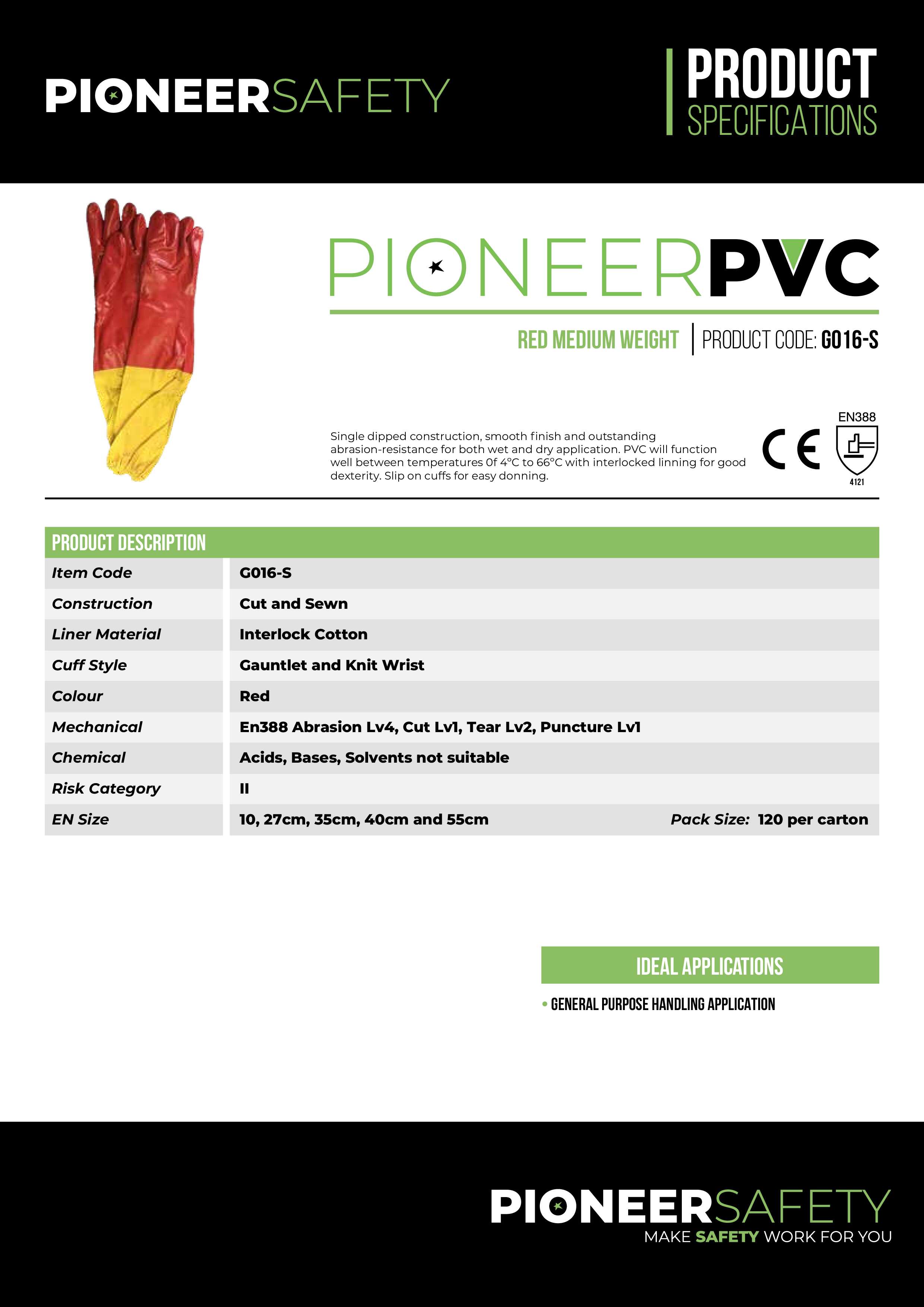PIONEER SAFETY Pvc Coated Red Open Cuff Gloves 60cm Std Shoulder Length G016-5