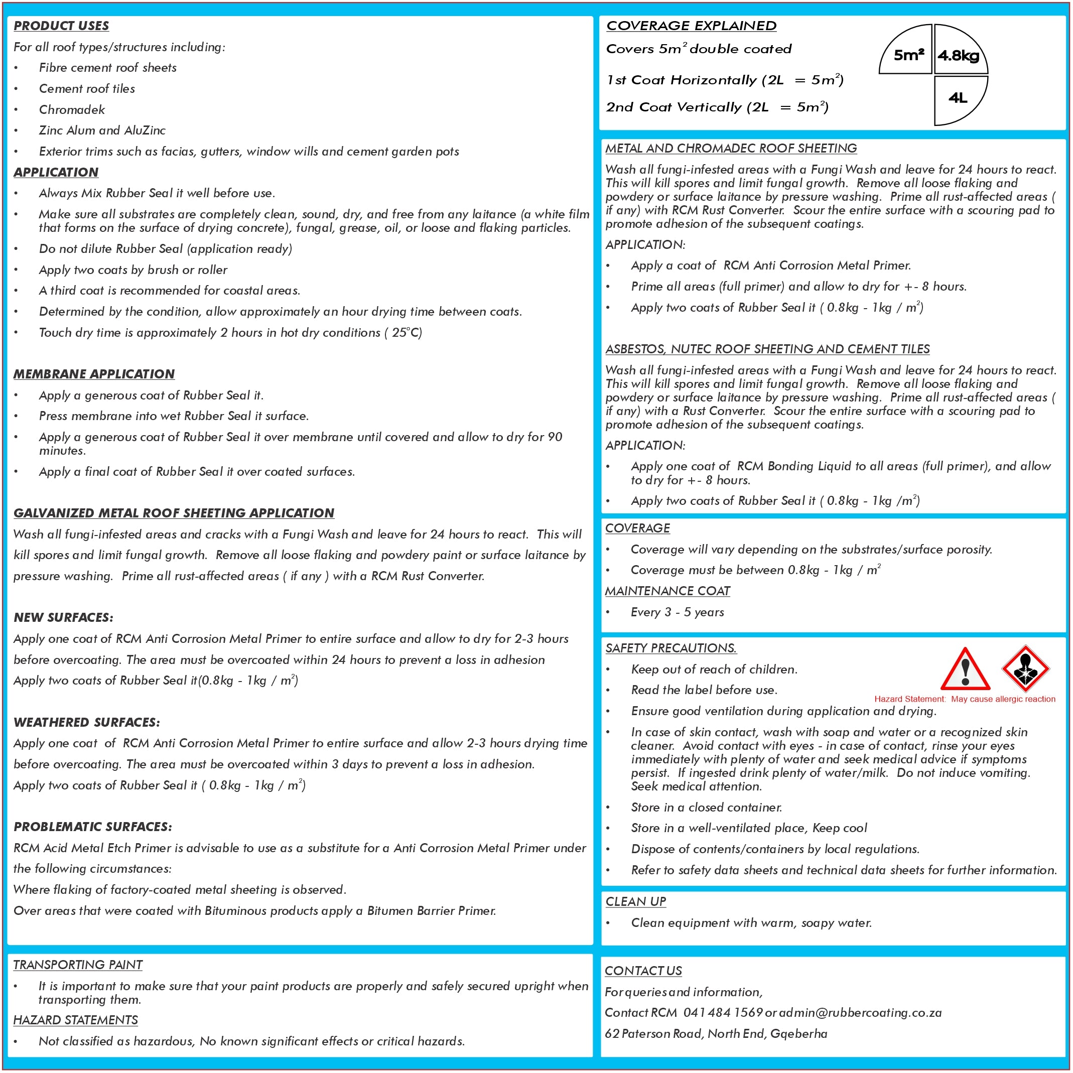• User Friendly – Easy to apply with an RCM Paint Brush or roller, with a touch-dry time of just 2 hours under ideal conditions.