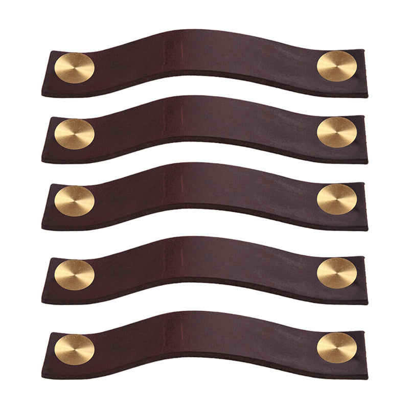 ROCO Leather Cupboard Handle Brown & Brass 128mm ( 5 Pack )
