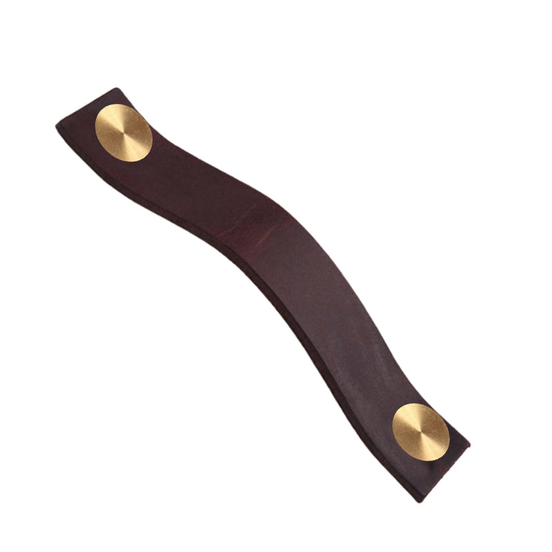 ROCO Leather Cupboard Handle Brown & Brass 128mm