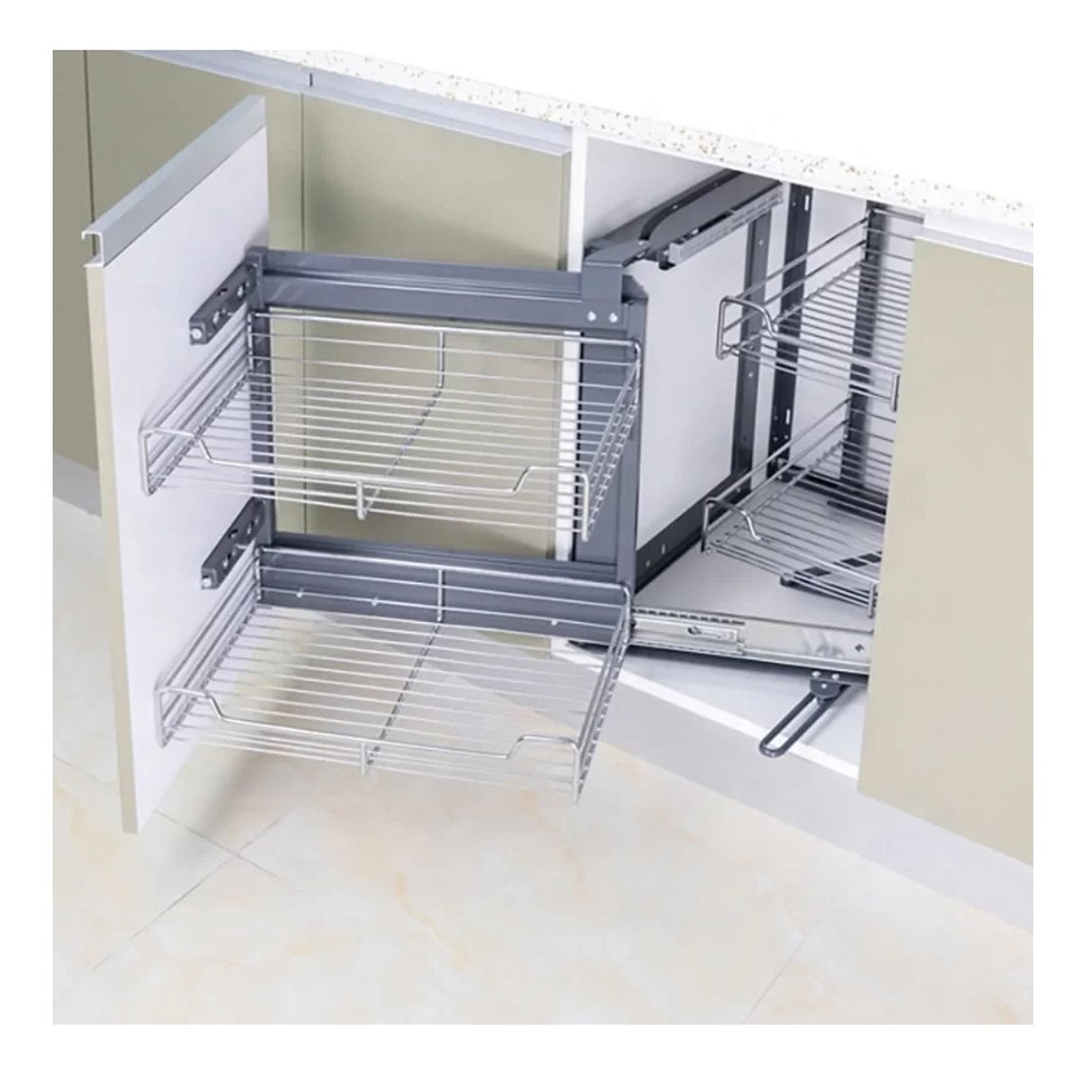 - Maximizes corner cabinet storage