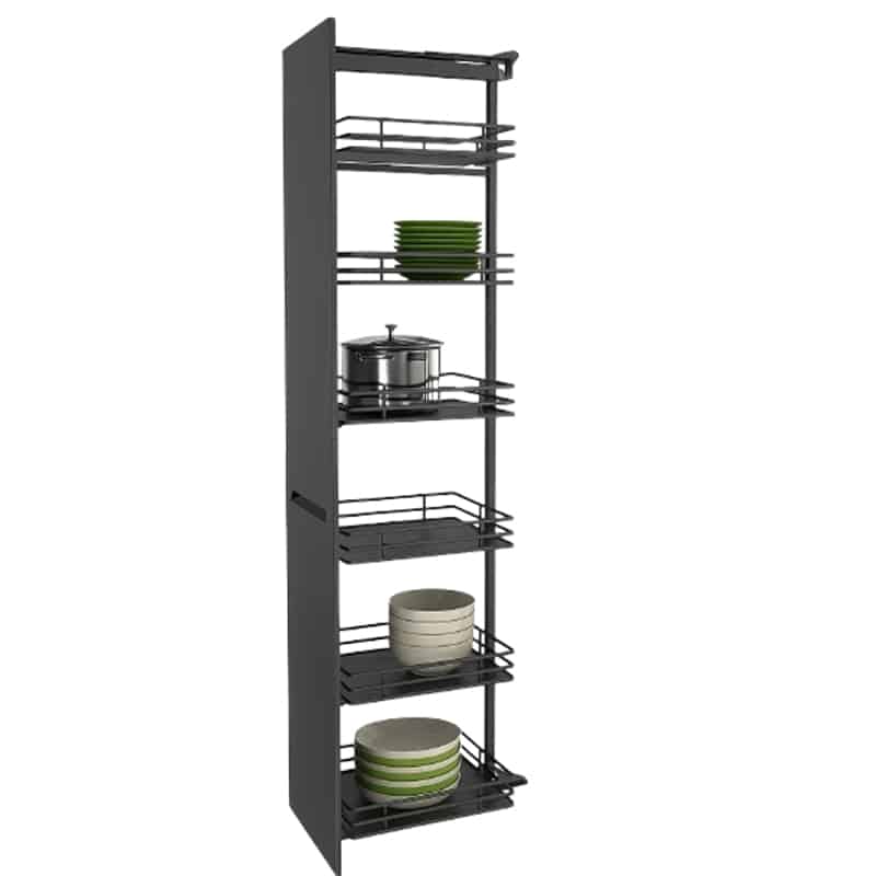 Upgrade your kitchen storage with the ROCO Pull Out System for Large Door 300mm width Orion Grey, specially designed for cabinet heights between 1700 mm and 1900 mm. This tall pull-out unit transforms your cabinet into a highly organized, easy-access pantry system, making it the ideal choice for modern kitchens that prioritize both form and function.