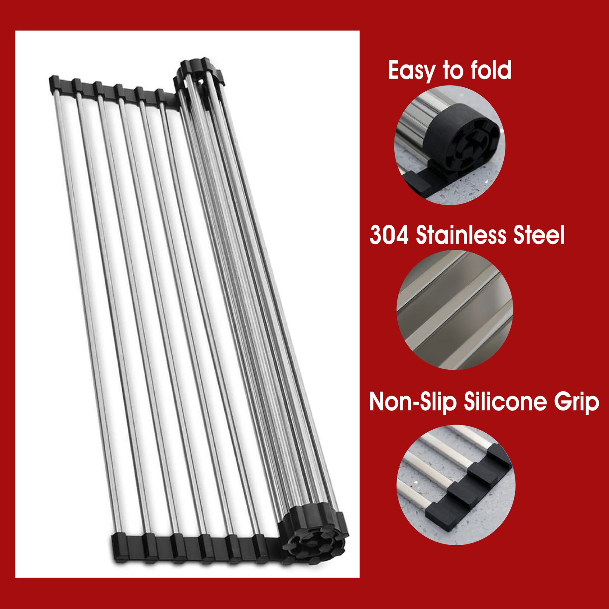 1 x ROCO Roll Up Dish Drying Mat/Colander Stainless Steel 470mm x 460mm