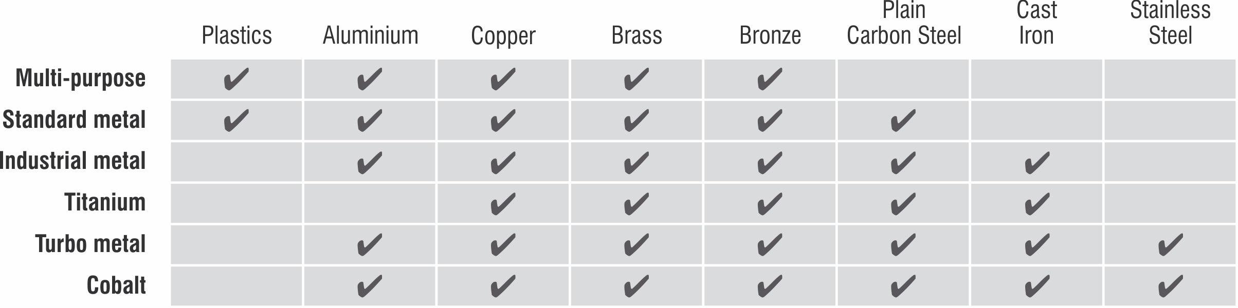 Matching the correct drill bit to the intended application will maximise the life of the bit.