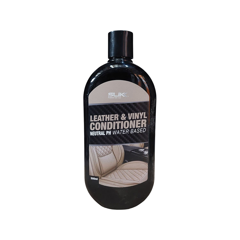 For best results use SLIKK LEATHER & VINYL CONDITIONER neat / undiluted to clean the surface adequately and wait until dry. Apply SLIKK LEATHER CONDITIONER with soft cloth and spread over the leather surfaces, leave for 5 minutes and then rub in. Wipe off excess product with a soft cloth. A second application may be applied if required. Regular use is recommended for leather seats in vehicles that is exposed to daily direct sunlight to mitigate UV damage