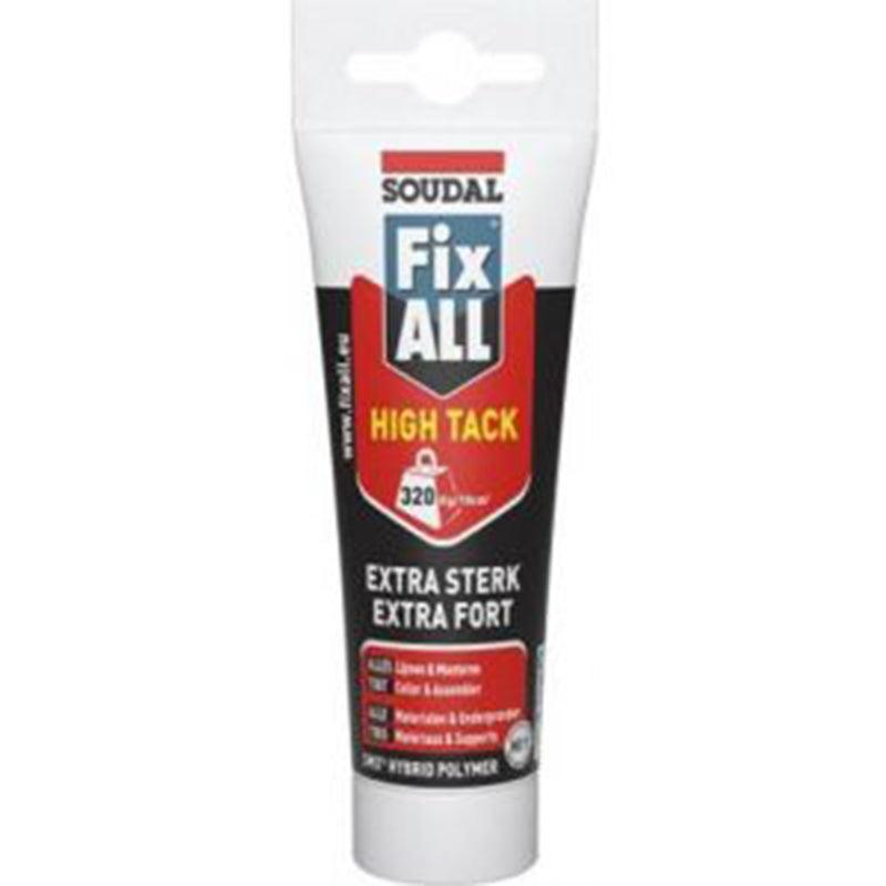 SOUDAL FIX ALL High Tack Super Strong Flexible Adhesive Tube White 125ml is a high strength, flexible adhesive and sealant which combines high end strength with high initial tack. The product can be applied both outside and inside and can be painted and used in sanitary areas.
