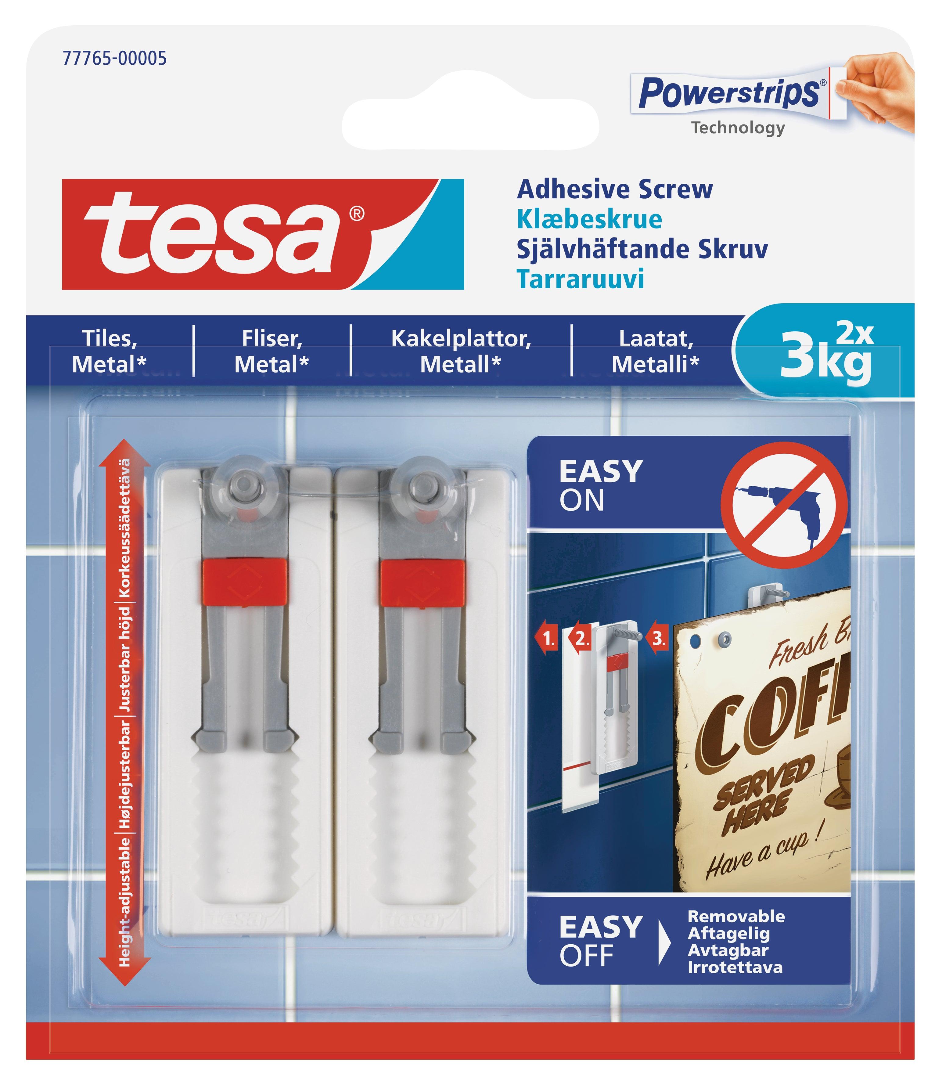 Tesa Adhesive Screw Adjustable 2x3kg – Tiles 2 Hooks/ 3 Strips