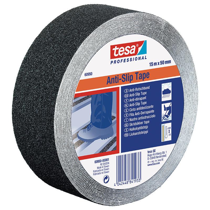 The tesa® 60950 anti-slip adhesive tape is certified to DIN 51130 standards and stands out because of the fact that it is resistant to saltwater and chemicals, as well as the fact it can be torn off by hand and can be removed without any difficulty.