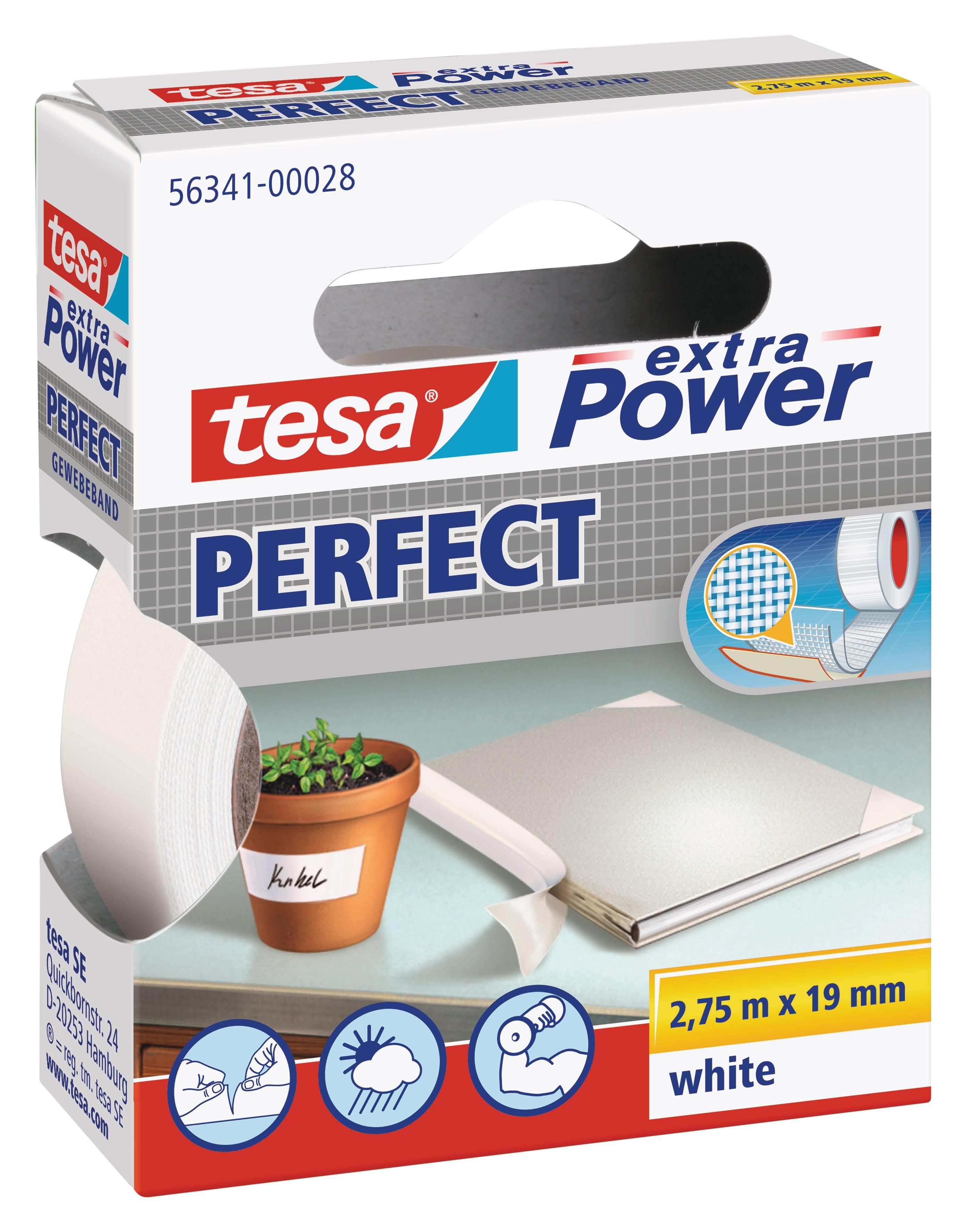 1 x TESA Extra Power Perfect Self-Adhesive Tape 2.75m x 19mm White