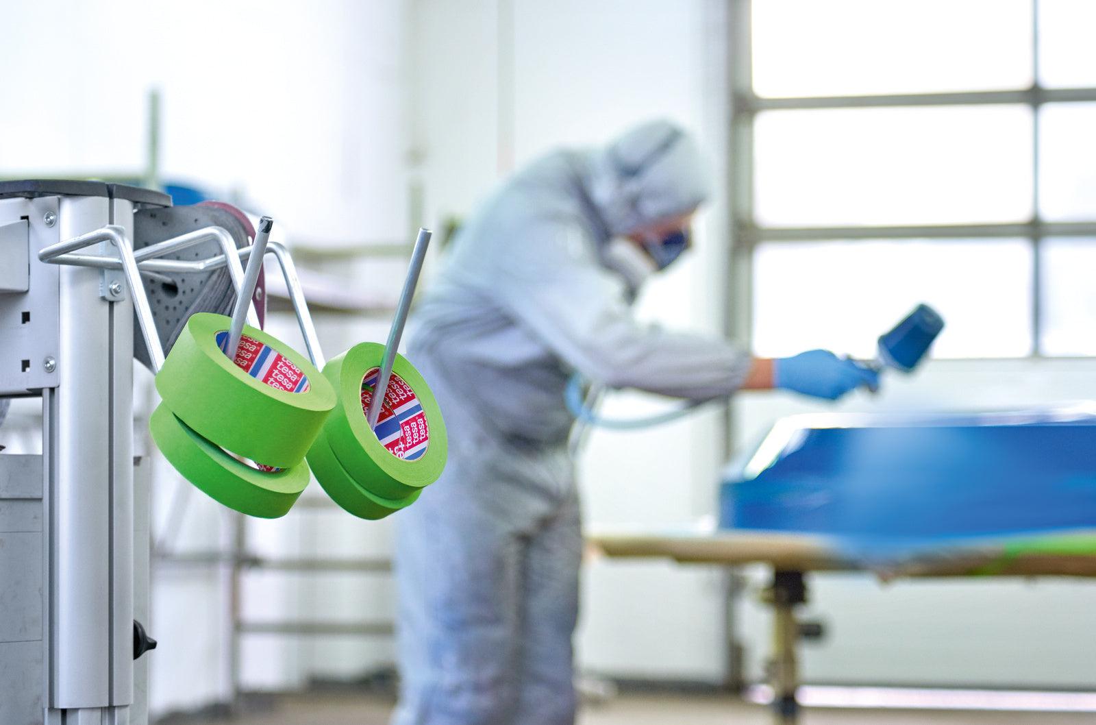 TESA Paper Masking Tape 120°C 50m x 25mm is a High Performance Masking Tape Grade – up to 120 °C. It is a green colored, smooth masking tape for highly demanding paint masking applications. It is especially used in transportation sectors such as marine, train, truck and various other applications where high conformability and clean paint edges are required.