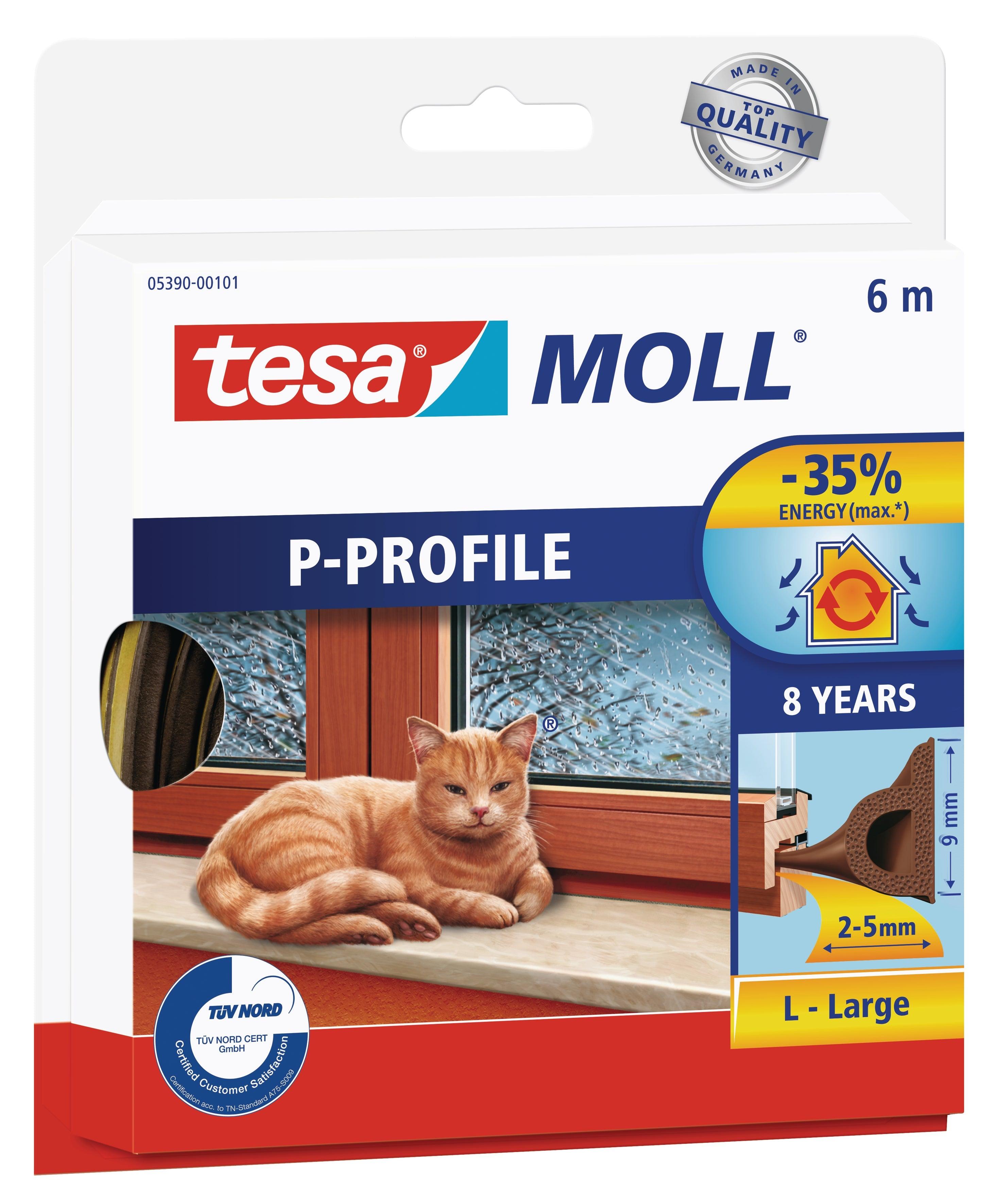 TESAMOLL P-PROFILE 6m x 9mm Brown is a self-adhesive window insulation tape and draught excluder. It seals gaps in older windows and contributes to saving energy.