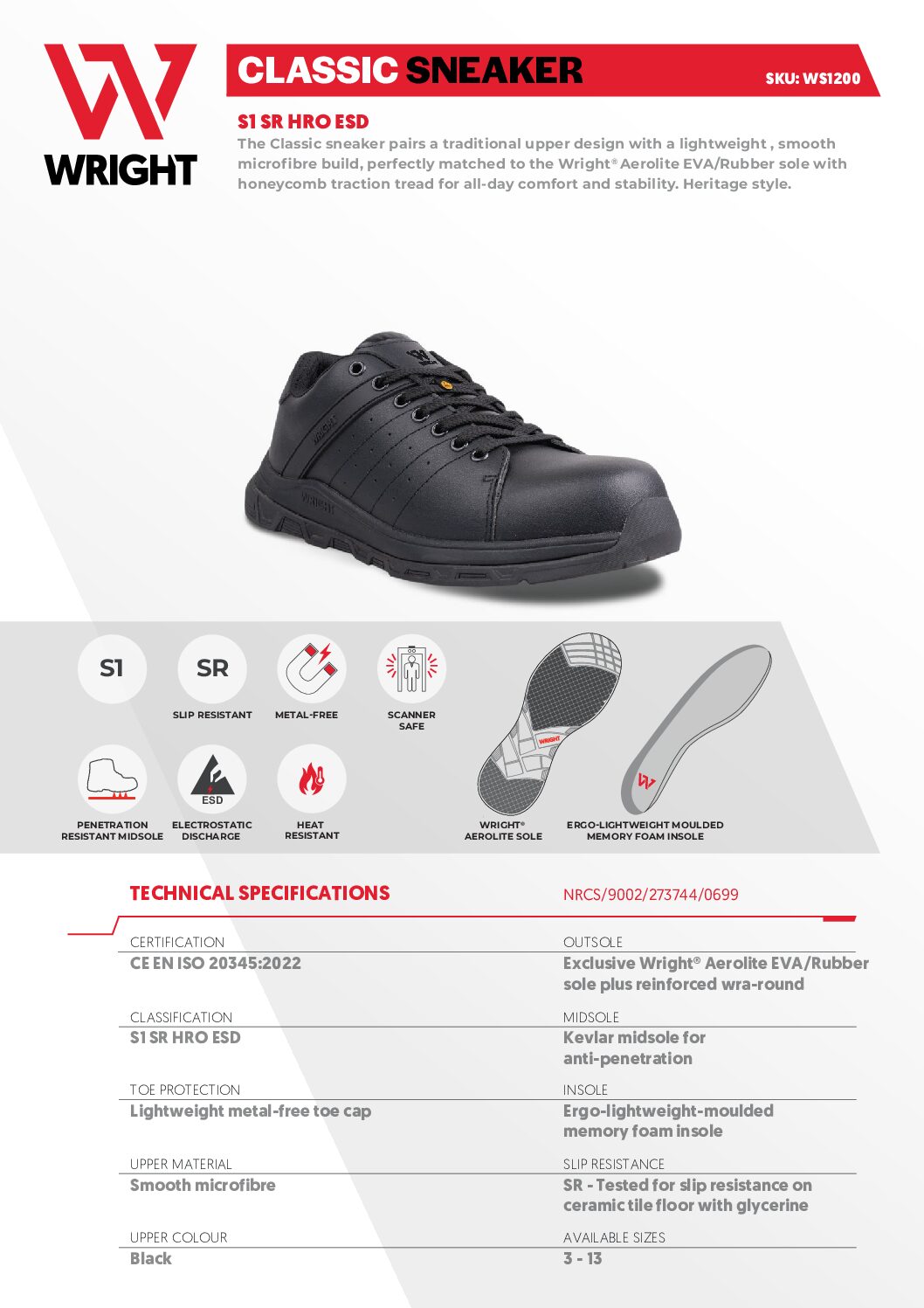 WRIGHT Classic Safety Sneaker