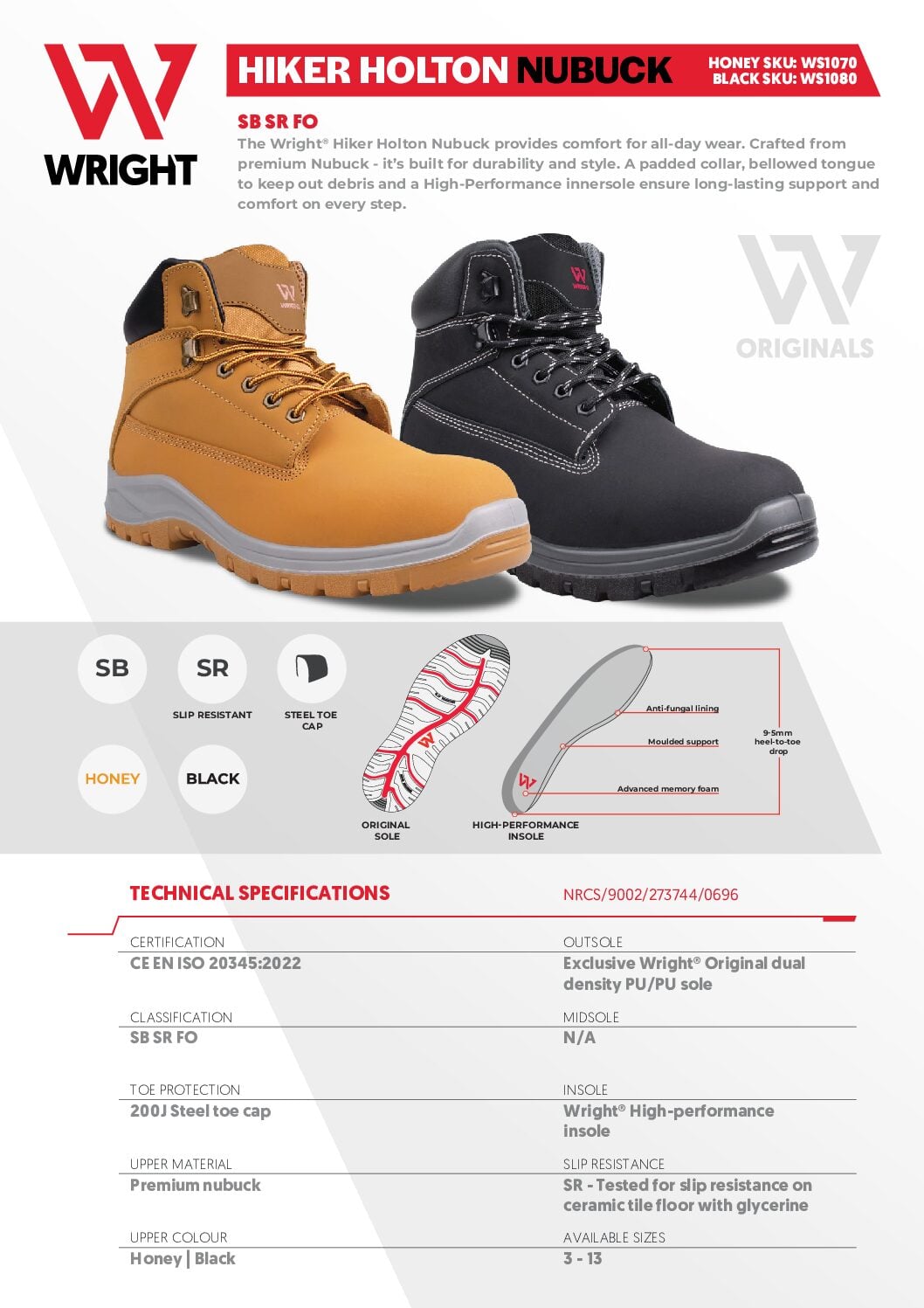 1 x WRIGHT Hiker Holton Nubuck Safety Boot